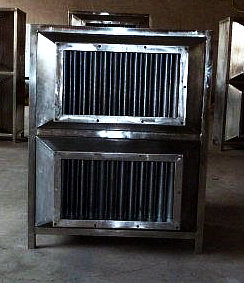 換熱器是燃油、煤、氣鍋爐余熱回收的專用設備,安裝在鍋爐煙口或煙道中,將煙氣余熱回收后加熱空氣,熱風可用作鍋爐助燃和干燥物料。